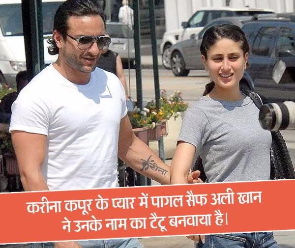 बॉलीवुड में टैटू गुदवाने वाले कलाकारों की फेहरिस्त काफी लंबी है। बॉलीवुड में लगभग हर कलाकार ने अपने शरीर के किसी न किसी हिस्से पर टैटू गुदवाया है। करीना कपूर से डेटिंग शुरू करते ही सैफ ने उनके नाम का टैटू बनवा लिया था।